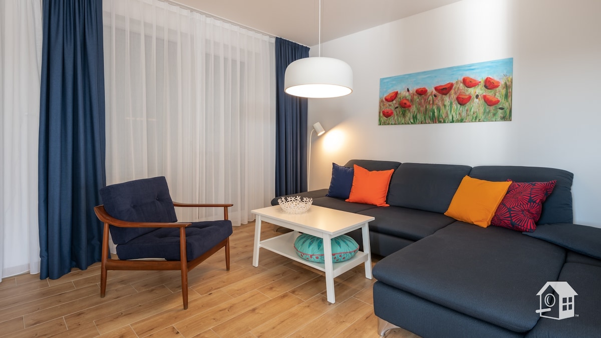 Modern, stylishly furnished holiday home in a peaceful location at Kulkwitzer See – Perfect for relaxation & adventure Perfect for families & friends! 85 sqm, accommodates up to 6 guests. Highlights: - Fully equipped kitchen & comfortable living area 1,000 sqm large garden for barbecuing, sunbathing & relaxing - Private sauna for ultimate relaxation - Quiet location in nature, ideal for rest & outdoor activities Book your unforgettable stay at Lake Kulkwitz now!