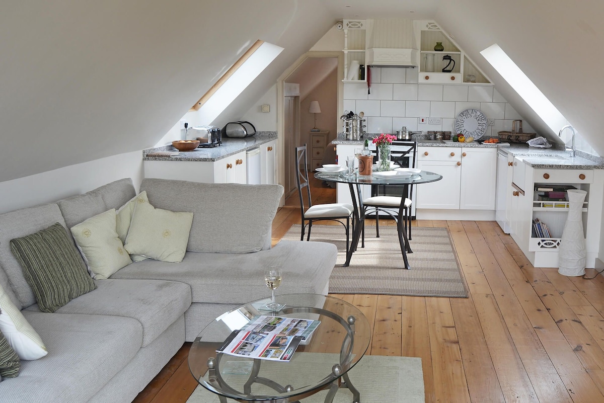 This recently renovated modern loft apartment is part of an historic building in the heart of the attractive market town of Beccles, a short walk from a multitude of activities. Formerly a 19th-century gentry residence, it offers olde world charm mixed with modern amenities with Twyfords Cafe serving great homemade food conveniently on the ground floor. Pubs, restaurants, shops, boating on the river and outdoor lido on the doorstep. Excellent coastal walks a 20-minute drive.