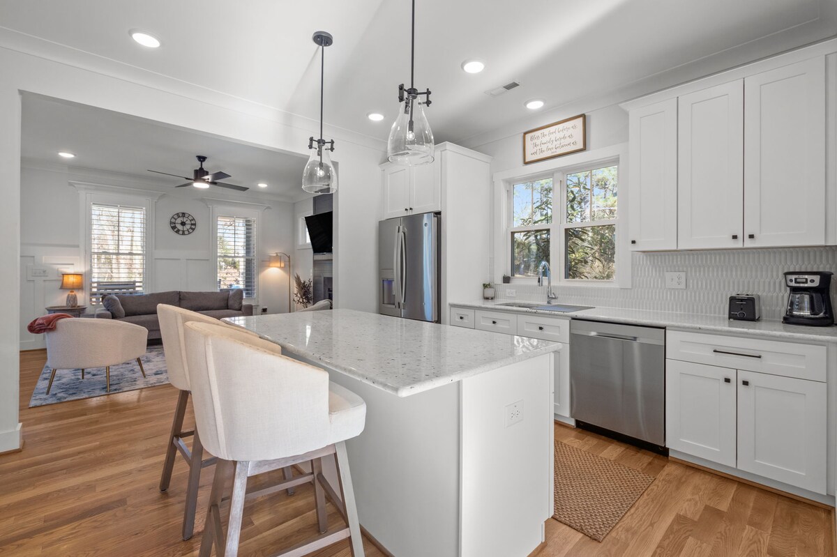 Անմոռանալի հիշողություններ ստեղծեք այս ընդարձակ, գեղեցիկ դիզայնով տանը ձեզ համար + 9 հյուր: Կատարյալ է ընտանեկան հավաքույթների, մարզական միջոցառումների և հատուկ առիթների համար ։ Գտնվում է Դարհեմի կենտրոնում ՝ Դյուկից, Բուլս մարզադաշտից, DPAC - ից և Ծխախոտի արահետից ընդամենը 4 րոպե հեռավորության վրա ։ Հանգստացեք կրակի փոսի շուրջը, վայելեք խորովածը կամ հանգստացեք ադիբուդիով և վինիլային թարմ գրառումներով ։ Թոշակի անցեք շքեղ մահճակալներով + սավաններով և շարժվեք դեպի AM - ի համադամասերական սրճարան ։ Անվճար մուտք դեպի մոտակա մարզադահլիճ ՝ լողավազանով ։ 4 օդային ներքնակ և էլեկտրամոբիլի լիցքավորիչ ։