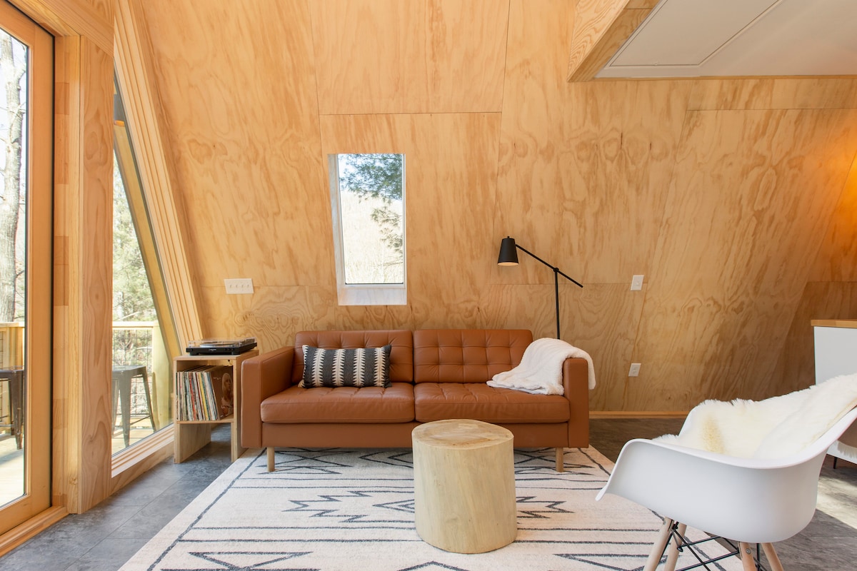 Բացահայտեք բոլոր 6 շքեղ տնակները՝ սեղմելով ստորև նշված հյուրընկալողի պրոֆիլի նկարը։ Ներկայացված է GQ ամսագրի «Լավագույն Airbnb-ները Էշվիլում» հոդվածում։ Վինտաժային ճամբարը հանդիպում է սկանդինավյան ժամանակակից ոճին այս նոր եռանկյունաձև տնակում, որը հարակից է 1000+ ակր պահպանվող հողատարածքի, 8 մղոն հեռու է Աշվիլ քաղաքի կենտրոնից, 1 մղոն հեռու է հիասքանչ արշավային արահետներից։ Փախչեք դեպի մասնավոր ջակուզի, ինքնուրույն վառվող վառարան, լեռնային տեսարաններ, հարմարավետ կահույք, արագ Wi-Fi, ռետրո էլեկտրական բուխարի, լիովին կահավորված խոհանոց, սպա լոգարան և բարձր մահճակալ։