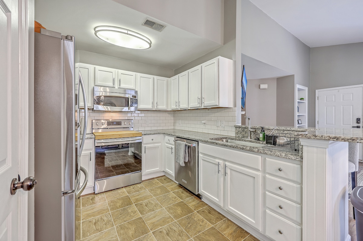 Գեղեցիկ թարմացված տուն Հյուսիսային Չարլսթոնում, որը գտնվում է ռազմածովային բազայից ընդամենը 8 մղոն հեռավորության վրա և օդանավակայանից, առևտրի կետերից, կատարողական արվեստի կենտրոնից և Չարլսթոնի կենտրոնից րոպեներ հեռավորության վրա: 3 ընդարձակ ննջասենյակ և 2,5 լոգասենյակ ՝ մեծ հավաքույթների համար լիովին կահավորված խոհանոցով, խնդրում ենք վայելել համադամասերական սուրճը բոլոր հյուրերի համար և գրավիչ պատիո և ցանկապատված հետնաբակ: Roku TV - ն ունի հյուրերի սպասարկում ՝ ձեր սիրած բոլոր բաժանորդագրությունները դիտելու համար: Գրասենյակը և հյուրասենյակը նաև առաջարկում են քնելու տարածքներ ։