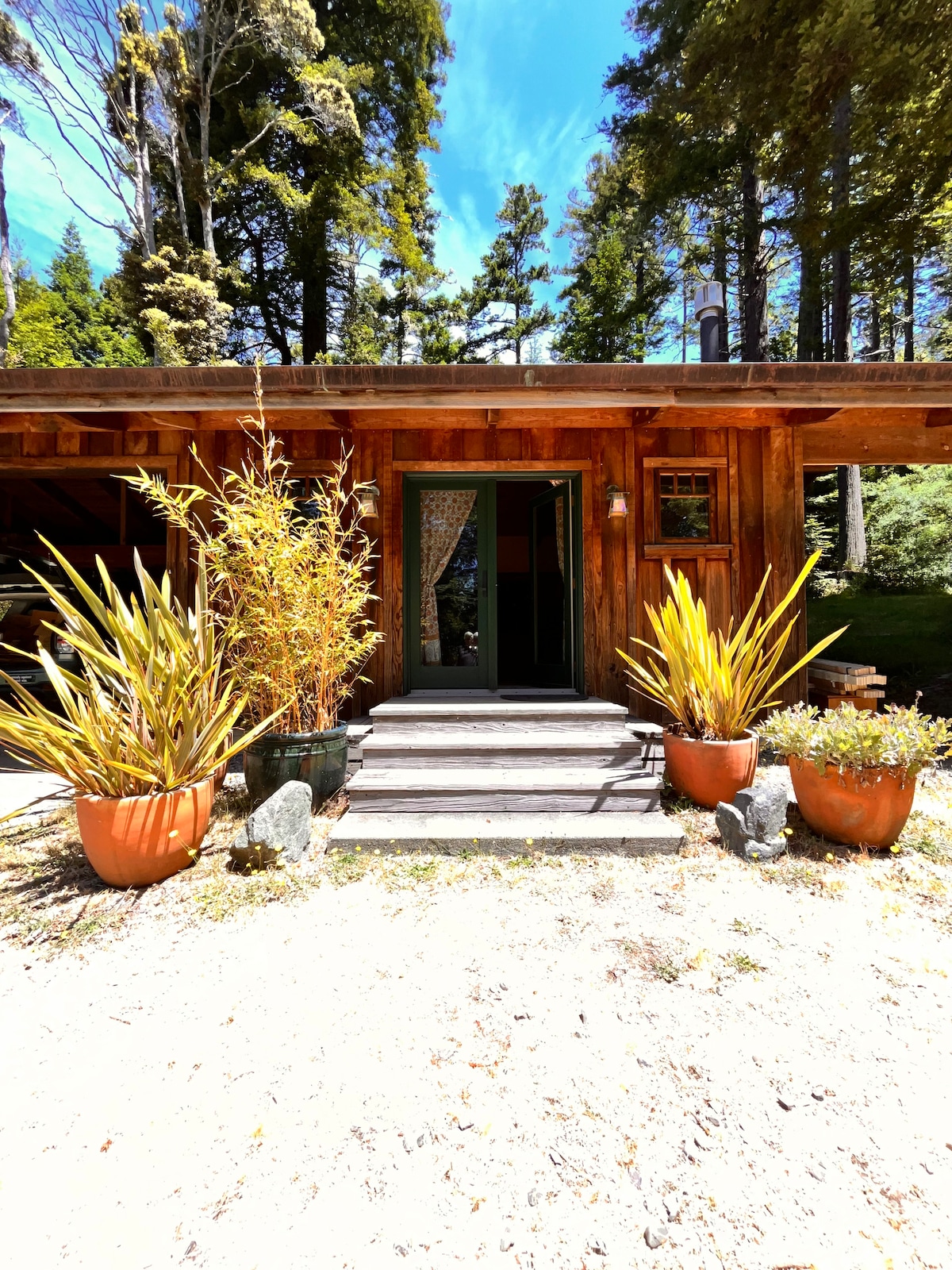 Beautiful living space w/ cozy fireplace, luxurious King bed and pull-out twin. Linger in a slate steam shower, walk amongst the Redwoods, or drive 5 min to the beach and world class restaurants. “Staying at this guesthouse nestled in the woods along the coast was an absolute dream.” NOTE: there is a limited kitchenette w/small fridge, microwave, dishes, & kettle. Prefer a full kitchen? Our 2nd private cottage is also a guest favorite w/ full kitchen: airbnb.com/h/idylliccottage-yurton33acres