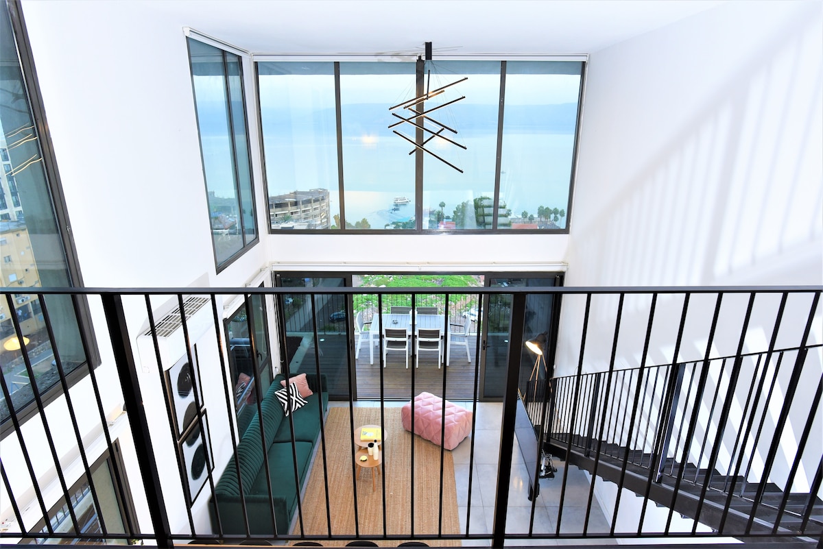 Դիզայներական լոֆթ ՝ ոճային մեծ պատուհաններով, որոնցից բացվում է հրաշալի տեսարան դեպի Գալիլեյան ծով: Այս շքեղ լոֆթն ունի ննջասենյակ և լոգասենյակ, ընդարձակ հյուրասենյակ, մեծ տեռաս ՝ լավաշ նստատեղով և ճաշասենյակով, ինչպես նաև գազի մանղալի կայան ։ Մինչև 5 հյուր ։ Այն ամենը, ինչ անհրաժեշտ է կատարյալ հանգստի համար. անկողնային սպիտակեղենից և սրբիչներից մինչև խոհանոցային տեխնիկա ։ Լոֆթը պատրաստ է ձեր ժամանմանը: