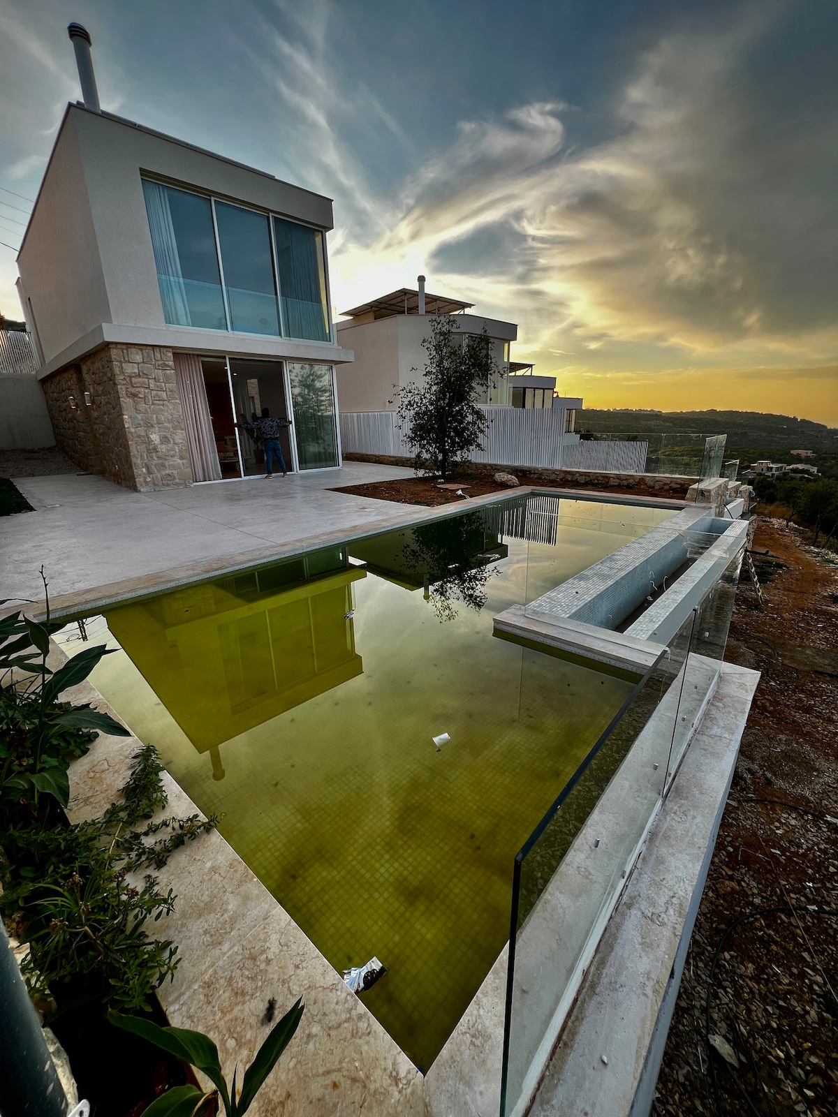 Escape to Villa D'Amchit, a private luxury retreat in Amchit surrounded by olive trees and moments from the sea. With 5 bedrooms, elegant indoor lounges, fully equipped kitchen, infinity pool, pergola seating, and expansive gardens, it’s perfect for family getaways, reunions, and intimate events. Enjoy 24/7 electricity, AC in every room, private parking, and complete privacy in a serene natural setting.