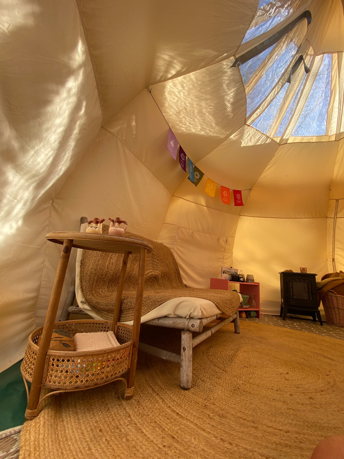 Geniet van de natuurgeluiden in deze unieke accommodatie. Vanuit de tent kijk je uit over de landerijen en rozenbottels. Naast 2 volwassenen kunnen er nog 3 kinderen verblijven. Zij slapen op een kindermatras op de grond. Bij warm weer open je alle ramen, zodat de tent lekker door waait. Verder beschik je over een koelkastje, filter koffiezetapparaat, waterkoker, gasstel met 3 pitjes, borden, bekers en bestek, BBQ, vuurkorf. Gratis wifi bij het sanitair-gebouw.