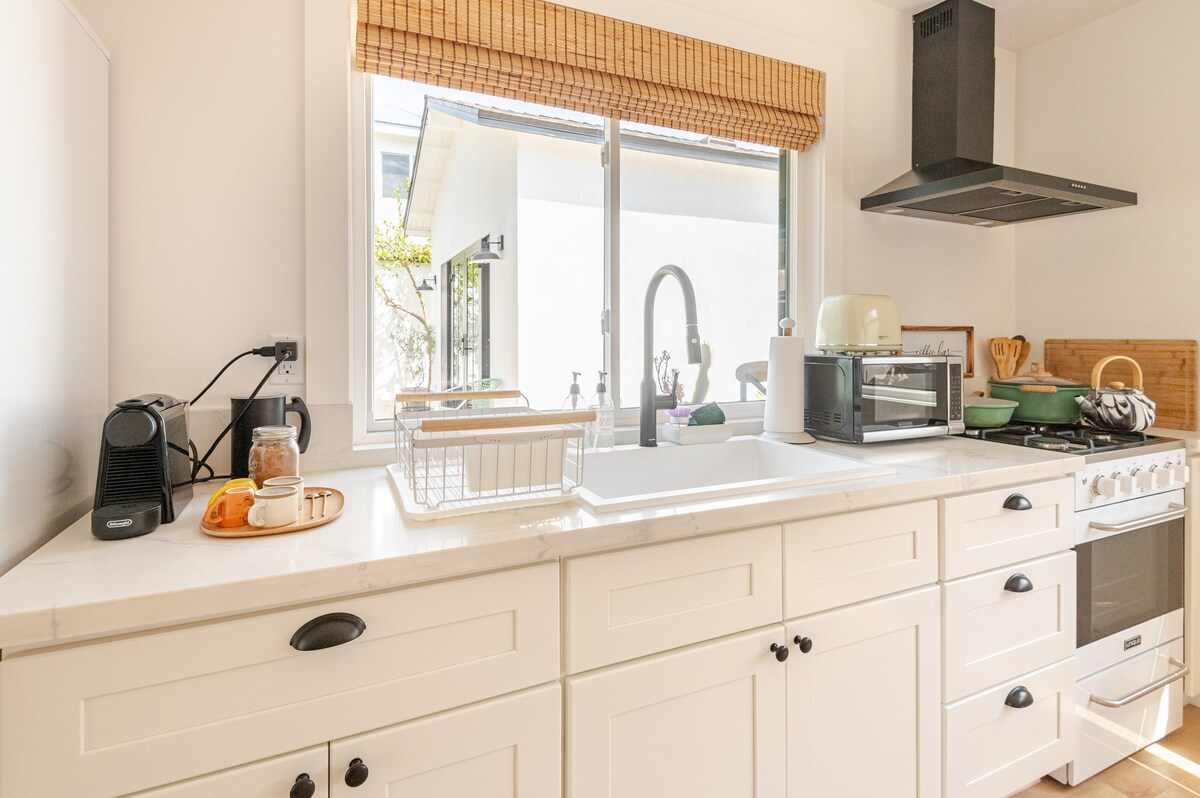 Վերադարձեք և հանգստացեք այս վերջերս թարմացված ժամանակակից տանը ՝ Universal Studios - ից ընդամենը 15 րոպե հեռավորության վրա ։ Տանը կա շքեղ, ամբողջովին թարմացված խոհանոց և հայտնի Peloton քայլք ։ Դուք կարող եք դուրս գալ զարմանահրաշ, մեկուսի հետնաբակի պատիո օազիսից կամ հեռուստացույց դիտել Sonos - ի շրջապատող ձայնով հյուրասենյակում ։ Այս ապաստարանը բույն է դրել աշխույժ սրճարանների, նրբաճաշակ ռեստորանների և պրեմիում կինոթատրոնների մեջ ՝ ձեզ տեղավորելով Լոս Անջելեսի գլխավոր տեսարժան վայրերի սրտում ։