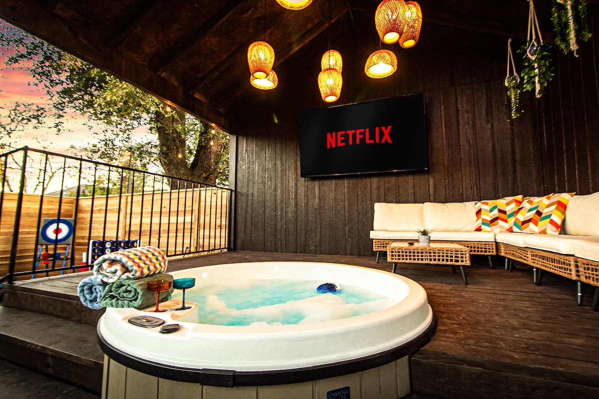 Բարի գալուստ The Cozy Cactus՝ յուրահատուկ դիզայներական տուն, որն ունի մասնավոր հետնաբակի օազիս՝ ջակուզիով, 85 դյույմանոց հեռուստացույցով, մինի գոլֆով, խաղերով, մանղալով և այլն։ Նախատեսված է որպես կատարյալ հանգստի վայր զույգերի, միայնակ ճանապարհորդողների և փոքր խմբերի համար։ Այս տան մասին ավելի շատ առանձնահատկություններ՝ ✓ Երկտեղանի մահճակալներ (150–179 սմ և 180–220 սմ)՝ շքեղ սպիտակեղենով ✓ Անվճար նախուտեստներ, սուրճ և թեյ ✓ Մաքրվել և մանրէազերծվել է մասնագետների կողմից ✓ Լիովին կահավորված խոհանոց ✓ Գտնվում է Հյուստոնի կենտրոնական մասի մոտակայքում