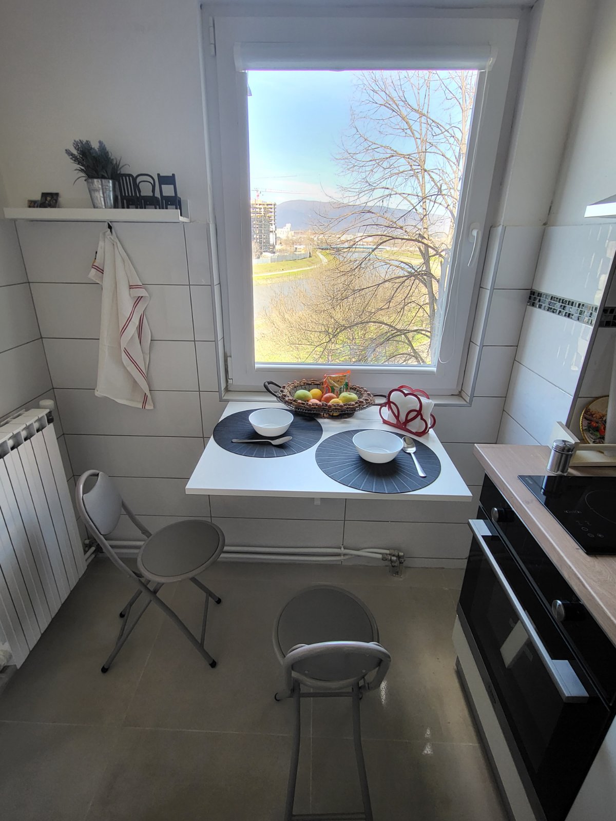 Fully renovated private modern apartment in the city centre, in the Kapishtec neighbourhood. Only 10 minute walk from main city square. Ideal for couples, group of friends or families. Located on the 9th floor, next to a shopping mall, where you can find lots of restaurants, coffee shops, bars, market. Bus stops and taxi station located in front of the building. Parking available in front of the building. Lovely views of the surrounding area. Nice, quiet and cozy.