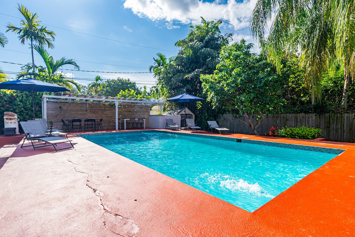 Այս հարմարավետ 3 սենյականոց տունը արևադարձային օազիս է ՝ աշխույժ քաղաքից ։ Վայելեք ափամերձ շունչը, արևադարձային մրգերի այգին, շատ բացօթյա լաունջ տարածք, առանձնություն և հանգիստ: Կենտրոնական տեղադրությունը և մոտիկությունը ԱՄՆ -1 և I -95 լողափերին թույլ են տալիս հեշտությամբ այցելել լողափեր, տեղական թեժ կետեր և Հարավային Ֆլորիդայի տեսարժան վայրեր: