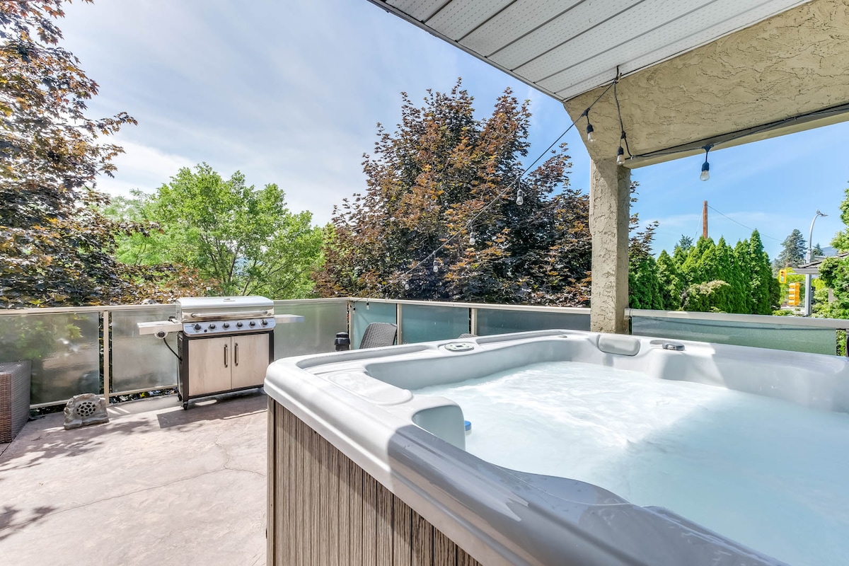 Welcome to a beautiful corner of paradise! Enjoy the ultimate private oasis nestled beside Knox park full of hiking and biking trails. The perfect location within 10 min drive of downtown Kelowna and the best starting point to jump to many gorgeous wineries in Kelowna! Take a dip or float on the swimming pool and and then unwind by the fire table at night and enjoy the sunset. Either way it’s the perfect getaway at a private retreat right in the heart of Kelowna!