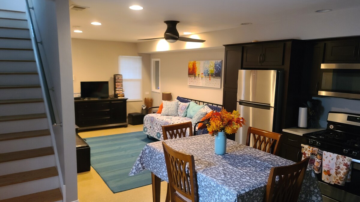 Serene մասնավոր մարզիչ տունը միավորի շրջանակներում քայլում հեռավորության վրա Չիկագոյի metra երկաթուղային համակարգի եւ պատմական կենտրոնում Wheaton. Ամբողջական խոհանոցիկ, լոգարան, բուխարի, wi - fi և առանձին ննջասենյակ և դուրս եկեք բազմոցից: Իդեալական է Ցորենի քոլեջի ընտանիքներ այցելելու համար:
