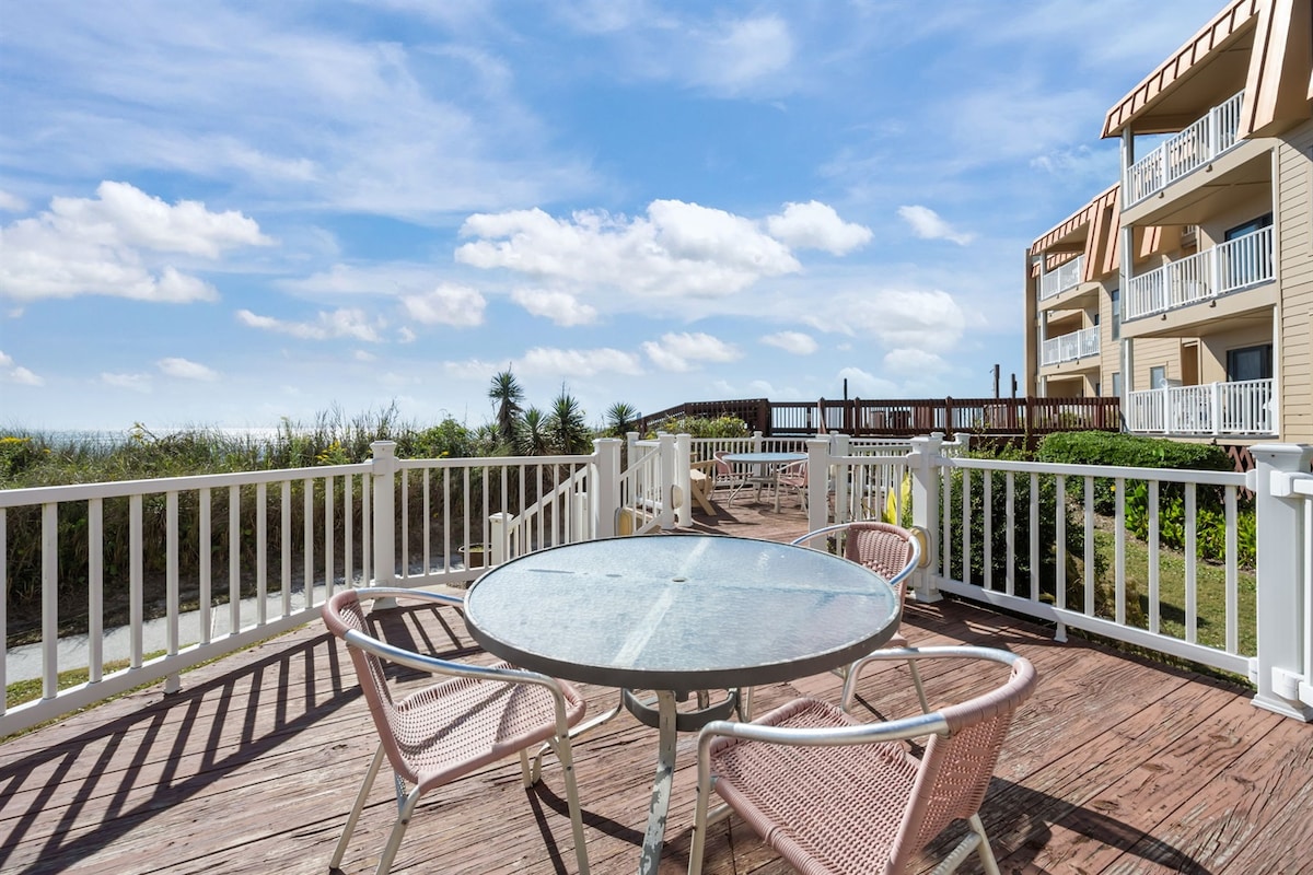 Beautiful beachfront condo with a fully stocked updated kitchen, glass walk in shower, LVP flooring, neutral paint. Gated entrance, private seasonal pool. We are right on the beach. Relax as you sit on the covered patio, enjoying the sound & view of the ocean, watch gorgeous sunrises & sunsets, dolphins. Go fishing or shark teeth hunting! We love to host and entertain our family & friends, so we treat our guests to the same! Minutes from Surf City Ocean Pier, local shops & restaurants.