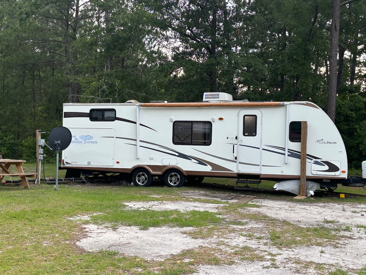 Try out this camper for a WARM, COZY & CLEAN, comfortable place to stay. Fresh sheets, 2 recliners! ROKU tv, microwave! Coffee! Heat\Air controlled by you! It is only 6 miles from Wrightsville Beach, 3 miles to Mayfaire and close to many restaurants & stores! BOOK NOW! CHECK IN ANYTIME AFTER After 4:00 P.M....it is AUTOMATIC BOOKING!