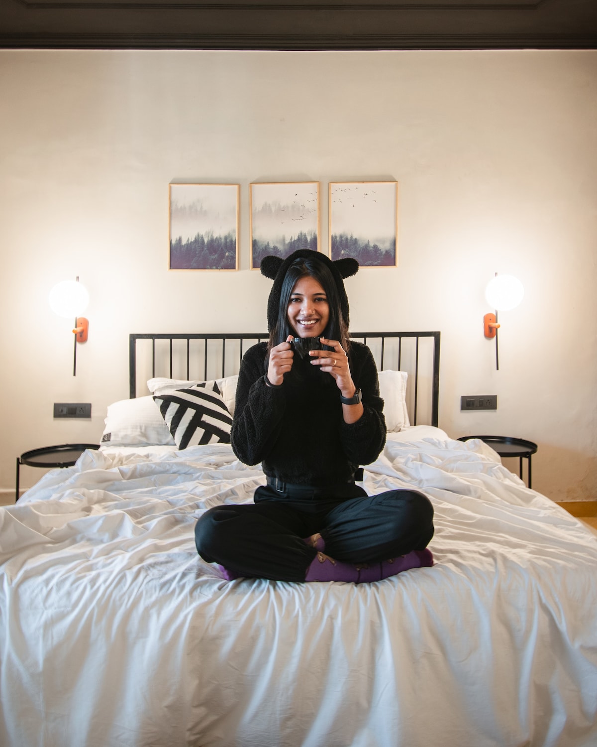 Minimalist One - Studio W Forest View| Boho-Chic Oasis in HKV Escape to a "Scandi-meets-Boho" sanctuary overlooking the lush Deer Park forest. This light-filled Corner Suite features a king bed, relaxed lounge, and a forest-view work desk. Why Book: Perks: Free Breakfast + In-house Cafe & Rooftop. Comfort: AC, Mini-fridge, Premium Toiletries & Power Backup. The Vibe: Minimalist design in the heart of Hauz Khas Village. Wake up to greenery, stay in style.