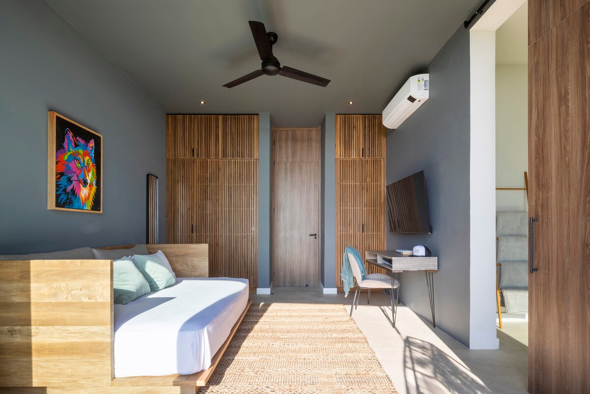 Relax and unwind in this serene, stylish apartment designed for comfort and a true connection with nature. Fully equipped and located in a safe, peaceful setting surrounded by lush greenery. Cool off in the pool or relax in the hammock after a beach day. Just a 3-minute walk to a white-sand beach, excellent restaurants, and unforgettable sunsets. Jungle trails behind the property invite wildlife sightings, with surf breaks, yoga studios, and a free outdoor workout area all nearby.