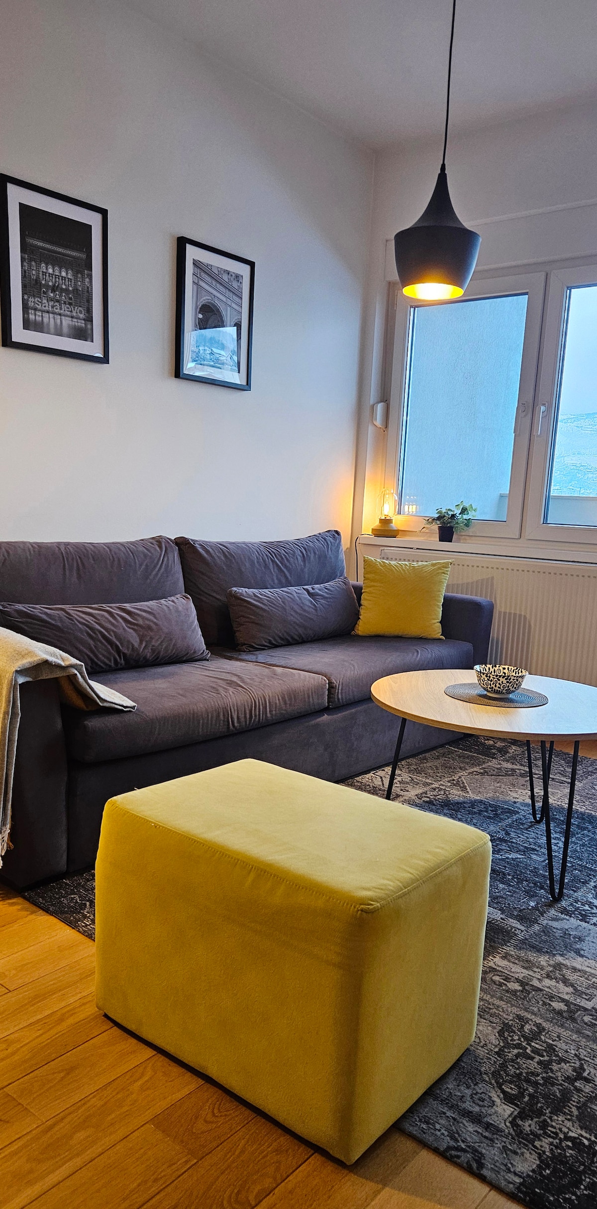 Բարի գալուստ Սարաևոյի սրտում գտնվող մեր հարմարավետ քաղաք ։ Հիմնական հետիոտնային գոտուց և պատմական տեսարժան վայրերից ընդամենը 5 րոպե հեռավորության վրա գտնվող այս գողտրիկ անկյունն իդեալական է զույգերի, ընկերների կամ փոքր ընտանիքների համար ։ Առանձնահատկությո ՞ ւն ։ Ընդարձակ տանիքի կտուր ՝ քաղաքի և շրջակա բլուրների ցնցող տեսարաններով ։ Խնդրում ենք նկատի ունենալ. բնակարանը գտնվում է 5 - րդ հարկում ՝ առանց վերելակի, ինչը նրան տալիս է խաղաղ, թաքնված զգացողություն, բայց պահանջում է մի փոքր բարձրանալ ։
