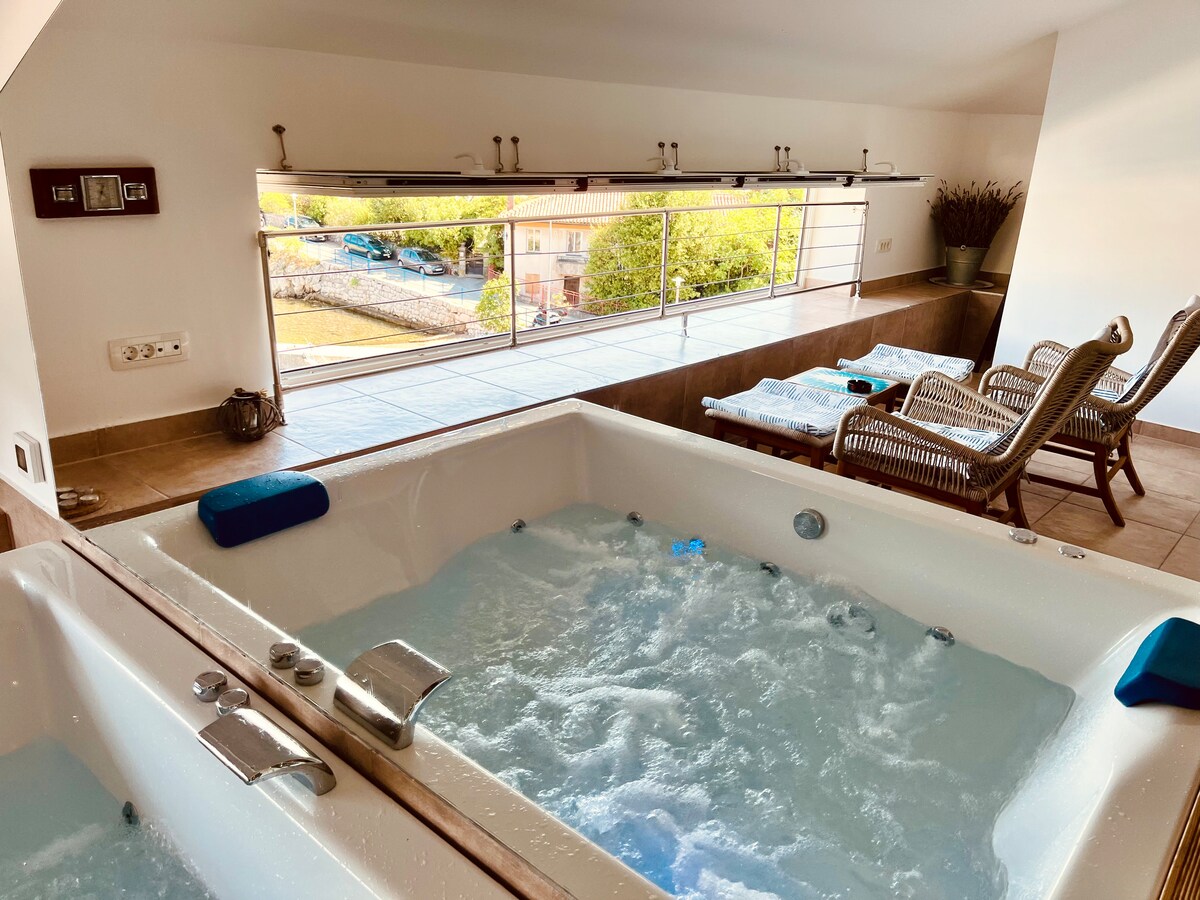Թաքստոց Crikvenica ծովի տեսարանով և մասնավոր լողավազանով