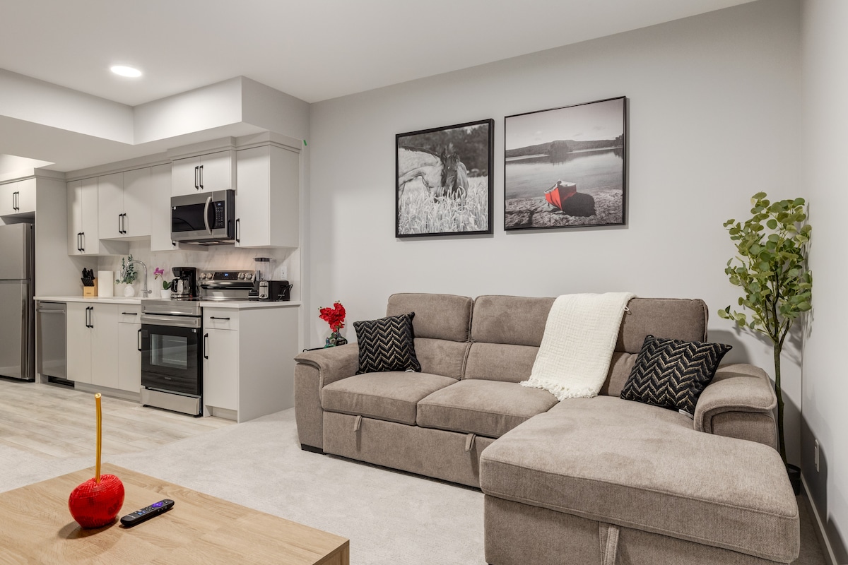 Beautiful Stylish Suite in the Heart of Saskatoon. Half block off the river trails. Walking distance from downtown, University of Saskatchewan, Sask Polytechnic, City Hospital, Royal University Hospital, Children's Hospital, Nutrien Wonderhub, Remai Modern Gallery, etc. Great for couples or solo travelers; business, academic, medical, or just being a tourist! Key-less entry - no carrying keys around