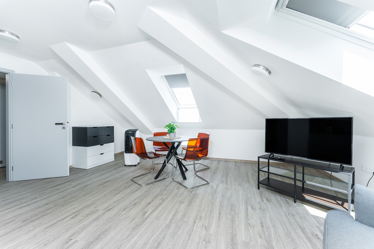 Չեխովի փողոց, 114. Բնակարան 58 «Լոնդոն»՝ 39 քմ, նոր շենքի վերին հարկում, պատշգամբով։ Փակ VIP հատակ ՝ չիպային վերելակով, 100% անվտանգությամբ, սպասարկմամբ և հարմարավետությամբ ։ Օդորակիչ, ամբողջական սարքավորումներ, ներառյալ սպասք և սրբիչներ։ Կենտրոնից 300 մետր հեռավորության վրա՝ Պոդյեբրադի սյունաշար, երկաթուղային և ավտոբուսային կայարանից 2 րոպե հեռավորության վրա, Պրահայի կենտրոնից 55 րոպե հեռավորության վրա։ Ինտերնետ 350 Մբիթ վերև և ներքև ՝ առանց սահմանափակումների !!! Wi - Fi - ի ամբողջական ծածկույթ ։ 4K 55''հեռուստացույց ։ Լվացքի մեքենա և չորանոց, ամանալվաց մեքենա, սառնարան / սառցարան, միկրոալիքային վառարան ։