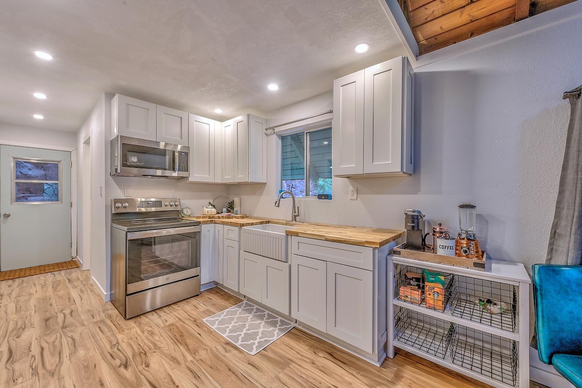 The Best of Sedona - խաղաղ ու անխռով. Այս 2 BR/2 BA տունը, որը գտնվում է Slide Rock - ից 1 մղոն դեպի հյուսիս, առաջարկում է շքեղ ինտերիեր տնակային հմայքով: Լրիվ խոհանոց, 2 փայտի այրվող բուխարի, փայտը ներառված չէ, բայց հասանելի է գնել տեղում փաթաթված մասնավոր կարմիր փայտյա տախտակամած: Լսեք շտապող ջուրը և բնության ձայները ՝ վայելելով Կաղնու ծովախորշի և Կաղնու ծովախորշի ֆանտաստիկ տեսարանները ։ Նոր. օդորակիչն ու ջերմությունը հենց ՆՈՐ ավելացրին այս եզակի հարկաբաժինն էլ ավելի հարմարավետ դարձնելու համար ։