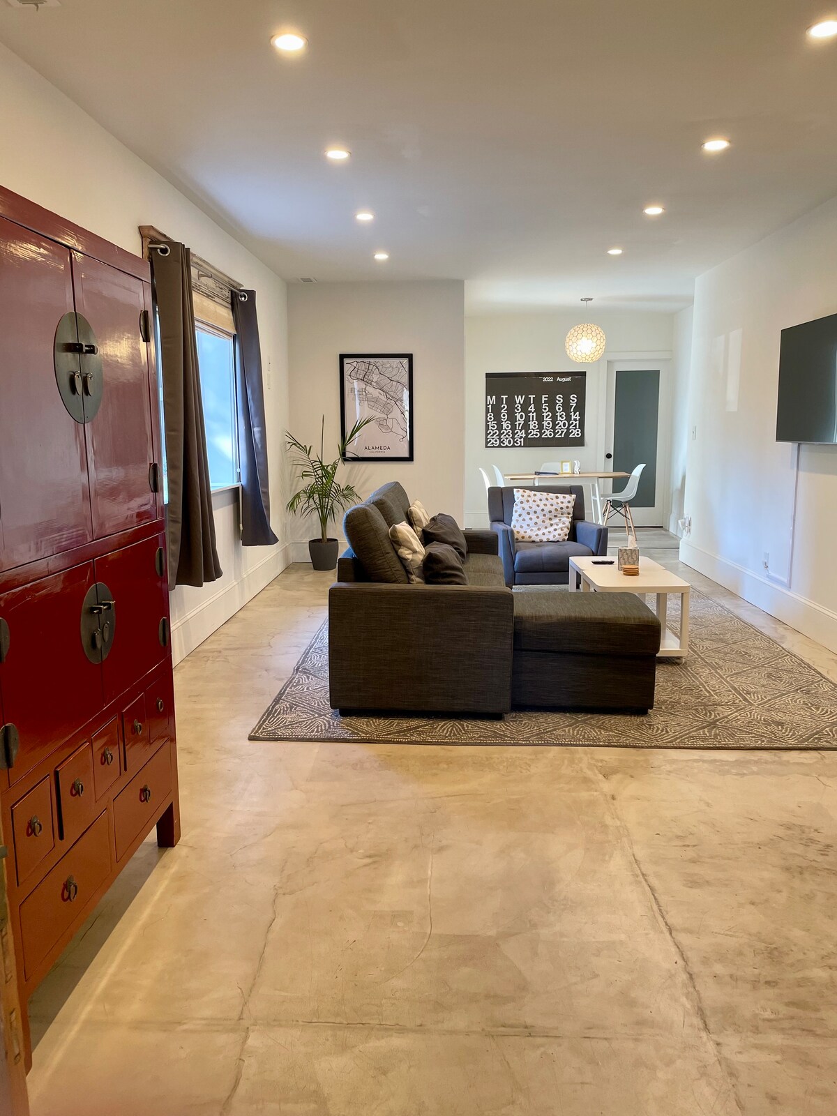 Վերադարձեք և հանգստացեք այս հանգիստ, ոճային տարածքում ։ Օքլենդ Հիլզը լի է զարմանահրաշ արշավներով ։ Այս վայրը հիանալի է դեպի Նապա (35 մղոն), Սան Ֆրանցիսկո (11 մղոն) կամ Կարմել (120 մ) մեկօրյա ուղևորությունների համար ։ Կենտրոնը գտնվում է աշխատանքի կամ զվարճանքի համար ։ Այս բաց կոնցեպտ 2 ննջասենյակը խաղաղ հանգստի վայր է: Հաշվի առնելով բաց կոնցեպտի դիզայնը ՝ ննջասենյակների միջև շատ առանձնություն չկա, պարզապես մեծ գրապահարանների սենյակի բաժանարար բ/վ է: Դրսում կա մի քանի նստած տարածք և կանաչ տանիք ։ Եվ էլեկտրամոբիլի լիցքավորում ։