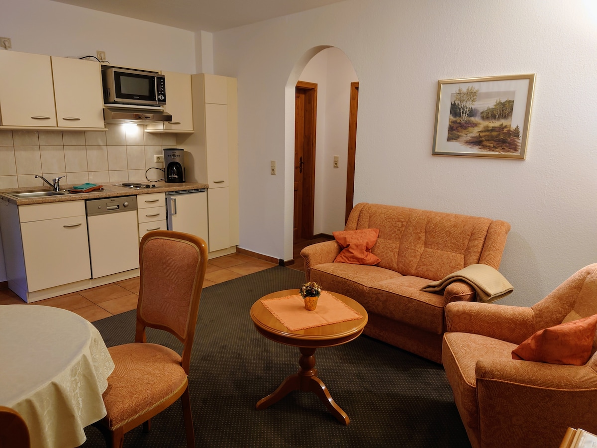Մեծ և հանգիստ բնակարան ։ Ոտքով 3 րոպե մինչև գեղեցիկ Քուեդլինբուրգի շուկայի հրապարակը ։ Ժամանակակից լոգասենյակները ցանկալի ոչինչ չեն թողնում: Մեծ ճաշասենյակը ձեզ բավականաչափ տարածք է առաջարկում, իսկ դեպի բակ տանող պատշգամբը հրավիրում է հանգստանալու ։ Եթե դեռ ուժասպառ չեք եղել Հարցում արշավներից, կարող եք ձեր էներգիայի մնացած մասը այրել մարզասրահում: Անհամբեր սպասում ենք ձեզ ։