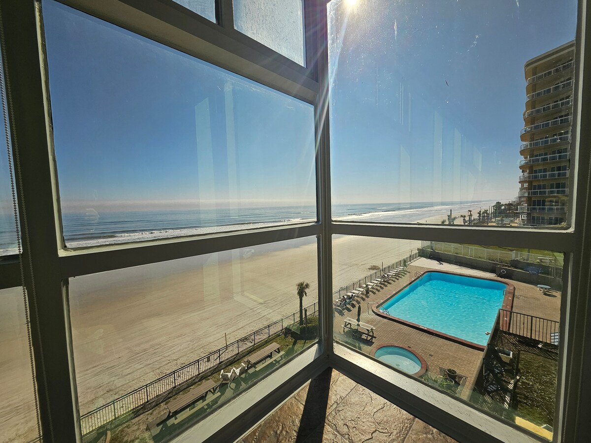 Կատարյալ հանգիստ, որը գտնվում է լողափին ։ Վայելեք օվկիանոսի տպավորիչ տեսարանով այս հանգստացնող կոնդոմինիումից լսվող ալիքները ։ 1 մեծ մահճակալ և առանձին պատշգամբ ՝ վայելելու համար ։ Կոնդոմինիումն ունի թարմացված խոհանոց և լոգասենյակ ։ Wi - Fi և մալուխ, տեղում լվացքատուն և անվճար առանձին կայանատեղի ։ Դուք նաև կվայելեք մեծ բացօթյա լողավազանը օվկիանոսի ափին գտնվող այս հիասքանչ համալիրում: Հենց Դեյտոնայի սրտում ՝ ոտքով դեպի ռեստորաններ, բարեր, գնումներ և հանգիստ ։