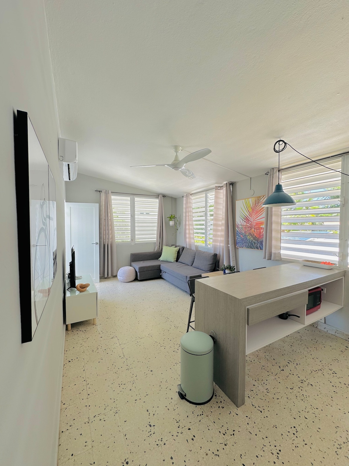 Experience tropical beach vibes in our clean and cozy 2 bedroom boho apartment in Ocean Park. Just one block from the beach, you can start your day with a morning run and stunning Caribbean sea views. Relax on our large leafy terrace, where the ocean breeze will refresh you as you enjoy your morning coffee and plan your adventures. The apartment includes a full kitchen, two bedrooms with queen beds, and one bathroom, providing all the comforts you need for a perfect getaway.