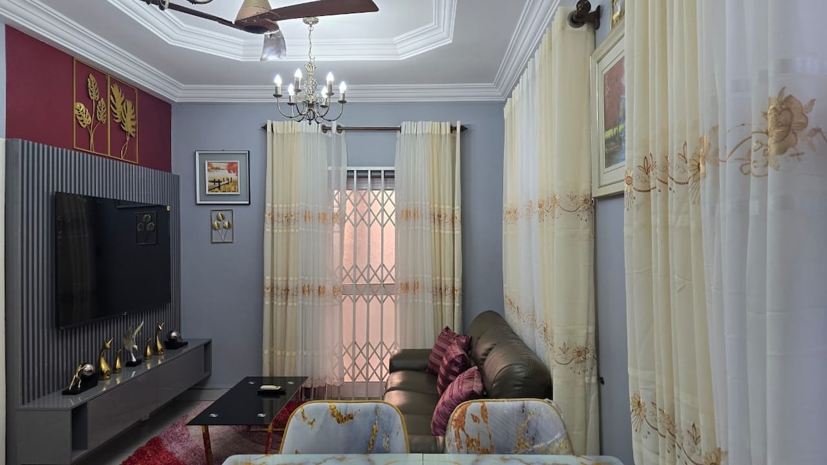 Տուն վերադառնալը երբեք այսքան լավ չի զգացել ։ Աքրա քաղաքային այս շքեղ տունը համադրում է աֆրո — ժամանակակից շունչը հարմարավետ նրբագեղության հետ ՝ վառ սև ֆասադից մինչև տաք փայտե ինտերիեր և հողի երանգի շեշտադրումներ ։ Անկախ այն բանից ՝ վերամիավորվում եք, թե վերագտնում եք, այս տարածքն առաջարկում է հարմարավետություն, ոճ և տան հպում յուրաքանչյուր անկյունում ։ Կատարյալ հիմք ՝ ձեր ճանապարհը վայելելու համար ։ Շատ մոտ է ամբողջ գիշերային կյանքին և ռեստորաններին: Բարձր պրոֆիլի մարդկանց հարևանությամբ, հետևաբար, ապահով և ապահով ։
