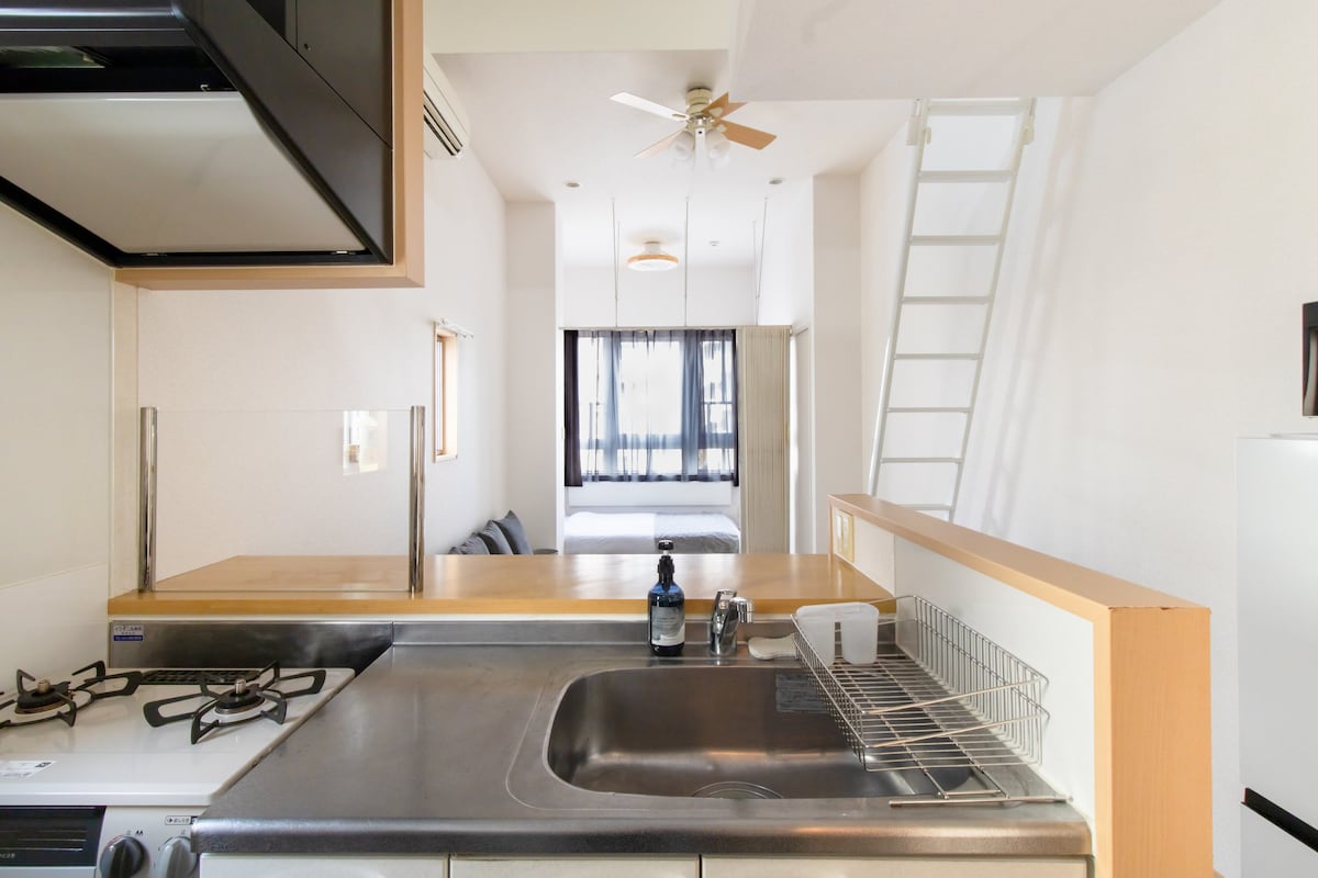 401 սենյակը (քնում է 4) նույն հարկում է ։ Ամրագրեք երկու սենյակները մինչև 9 հյուրի հետ մնալու համար. կատարյալ է ընտանիքների կամ խմբերի համար ։ ~ Meet Ohori 403 ~ Ոտքով 6 րոպե մինչև Օհորի զբոսայգու կայարան ։ Հեշտ մուտք դեպի Թենջին և Ֆուկուոկա օդանավակայան ։ Լուսավոր և մաքուր սենյակ ՝ երկհարկանի մահճակալով + սահեցնող մահճակալով, որը կատարյալ է մինչև 5 հյուրի համար ։ Վայելեք Netflix - ը պրոյեկտորի հետ ՝ հիանալի գիշեր անցկացնելու համար: Հանգստացեք փոքր պատշգամբում ՝ սուրճով կամ գրքով ։ Կոմպակտ, բայց հարմարավետ ։ Հասանելի է լվացքի մեքենա - չորանոցով, Wi - Fi - ով և խոհանոցով ՝ երկարատև այցերի համար ։
