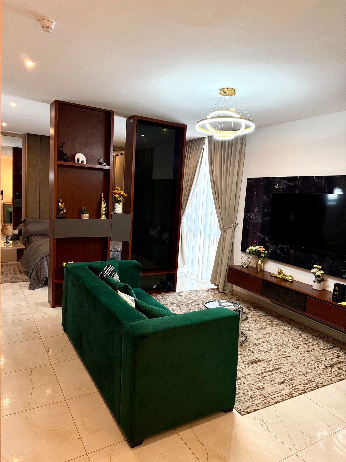 Executive 1 bedroom apartment + living room & open plan kitchen close to the airport, and in the heart of the business district. Short and long-term stays . Peaceful and serene, ideal for both working and relaxation lifestyles. Facility has a lounge, a gym, a restaurant, a swimming pool and a rooftop. Our management can also cater for your lunches and dinners privately, and provide meals for your entire stay. For your utmost comfort, book now and experience our top-notch hospitality!