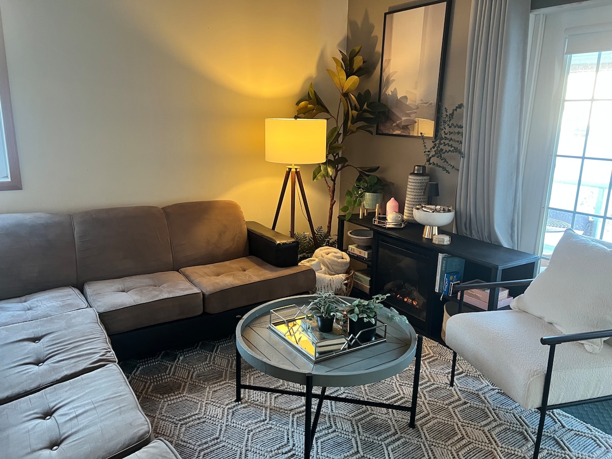 Enjoy this bright 2-bed/2-bath condo in the heart of Kelowna. Sleeps 6 with a king, queen, and queen sofa-bed. Cook in a full kitchen, relax by the gas fireplace, stream Netflix on the large TV, or sip morning coffee on the balcony. A very walkable neighbourhood with nearby parks, beaches, wineries, breweries, shops, and restaurants. Free self check-in, secure parking, in-suite laundry, central heat/air, high-speed WiFi, and no cleaning fee! Big White Ski Resort less than an hour's drive away.