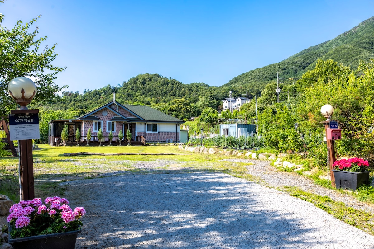 Մենք ունենք ընդարձակ պարտեզ՝ հաճելի սոճիներով և սեզոնային ծաղիկներով։ Մեր հաճելի հանգիստ պարտեզում կարող եք ապաքինվել և հանգստանալ։ Մենք նաև փոքր ագարակ ունենք, որտեղ աճեցնում ենք մրգեր։ Ամառային սեզոնին կարող եք հավաքել և վայելել նախաճաշին։ Կարող եք զբոսնել մեր տան մոտակայքում գտնվող գետի ափի արահետով և վայելել ջրային դահուկներ և պարապլաներիզմ։ Հասանելի է նաև հասարակական տրանսպորտ ։ Այն Քյոնգի-Ջունգանգ գծի Ասին կայարանից 10 րոպե քայլելու հեռավորության վրա է։ Հնարավոր է նաև ուղևորների վերցնելը Ասին կայարանից։