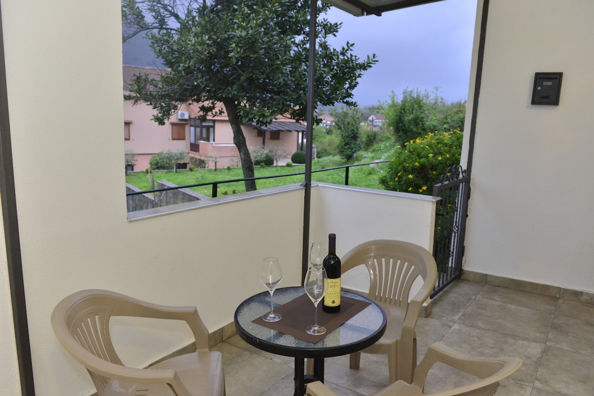 This is a lovely 2 bedroom apartment condo in a over 200 years old 19th Century stone house quiet and peaceful area, with a Stunning and Most Beautiful view . House has been renovated and equipped with the new furniture and appliances for enjoyment. The most beautiful sunset in the Kotor bay right from your bedroom or living room. Full kitchen with a refrigerator, stove top and oven. HDTV, and WIFI. Small stone beach in front of the house..