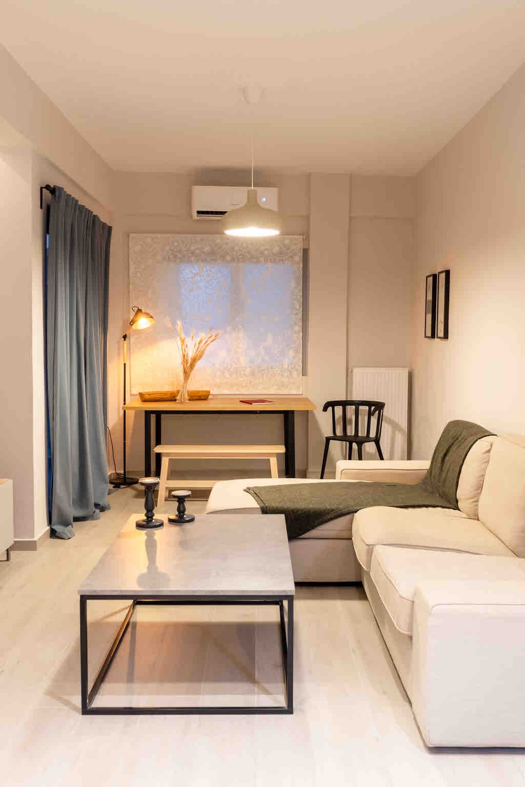 Այս 80 ք.մ. մակերեսով տարածքը ընդարձակ և ամբողջովին վերանորոգված բնակարան է ՝ շեշտը դնելով յուրաքանչյուր մանրուքի վրա ։ Այն գտնվում է հանգիստ թաղամասում, բայց միևնույն ժամանակ քաղաքի կենտրոնից ընդամենը 1,7 կմ հեռավորության վրա: Նեա Ճորա լողափը գտնվում է 1,2 կմ հեռավորության վրա ։ Բնակարանը գտնվում է կանգառից 10 րոպե հեռավորության վրա, իսկ սուպերմարկետից և դեղատնից ՝ 5 րոպե հեռավորության վրա: Հյուրերը կարող են կայանել անմիջապես բնակարանի առանձին մուտքից դուրս ։