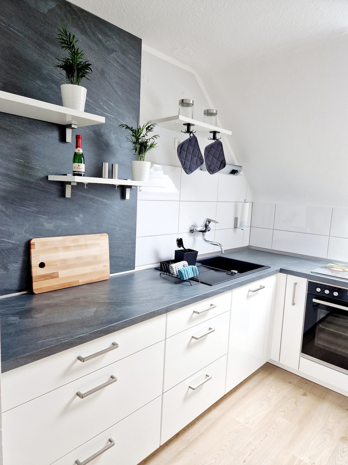 Բացահայտեք Օլդենբուրգի սիրտը մեր հմայիչ 45 մ² նկուղային բնակարանում, որը տպավորիչ է իր կենտրոնական, բայց հանգիստ վայրով: Դեննի բիոշուկայից և ավտոբուսի կանգառից ընդամենը 100 մետր հեռավորության վրա դուք կզգաք քաղաքի կենտրոնը 15 րոպեում կամ գնացքի կայարանը և ձիերի շուկայում անցկացվող աշխույժ շաբաթական շուկան (երեքշաբթի, հինգշաբթի և շաբաթ) ոտքով հասնելու հարմարությունը։ Վայելեք քաղաքային կյանքի և հանգիստ ապրելակերպի կատարյալ համադրությունը։