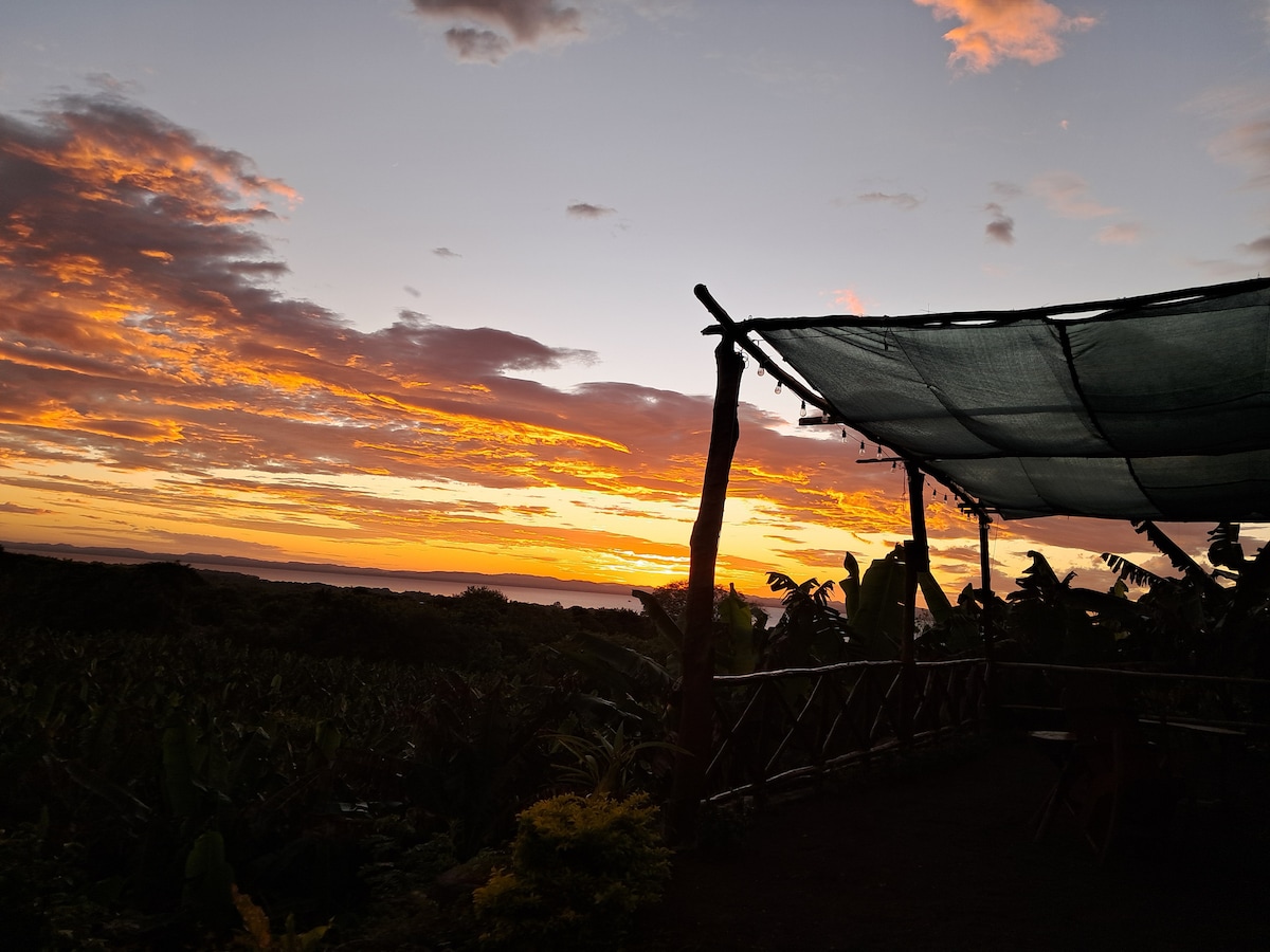 Desconecta de tus preocupaciones en este espacio tan amplio y sereno con la mejor vista al atardecer de la Isla de Ometepe.
