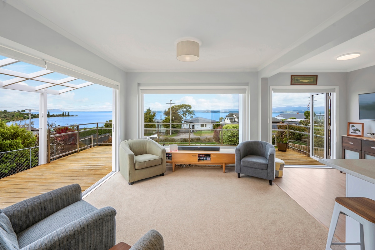 This treetops lakeview retreat is located on the South Western side of Lake Taupo. Tongariro Crossing, Mt Ruapehu Skifield, Turangi Adventure Tourism, hotpools, great bush walks and trout fishing are all within close proximity. Admire lake views and listen to birdsong from the treetops. Enjoy barista style coffee, grab a book and simply relax and enjoy the views from the expansive deck. At night, why not barbecue with drinks on the deck or in the winter, enjoy the ambience of the warm fire!