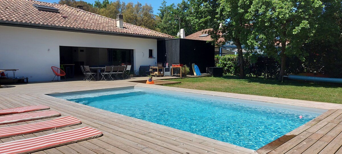 100մ2 մակերեսով նոր տուն ծովի և գոլֆի դաշտի միջև, շատ լուսավոր , որը նայում է Բիարիցի գոլֆին, ընդարձակ երկու ննջասենյակներով, որոնք գտնվում են օվկիանոսից հինգ րոպե հեռավորության վրա, որտեղ կարող եք ճաշել բազմաթիվ ռեստորաններում: Խանութներ փողոցով: Ավտոկանգառ եւ այգի 3500m2 Balinese/ ճապոնական մթնոլորտ տախտակամած, սառչել անկյուն, խորոված , brazier ... Zen մթնոլորտը երաշխավորված:)