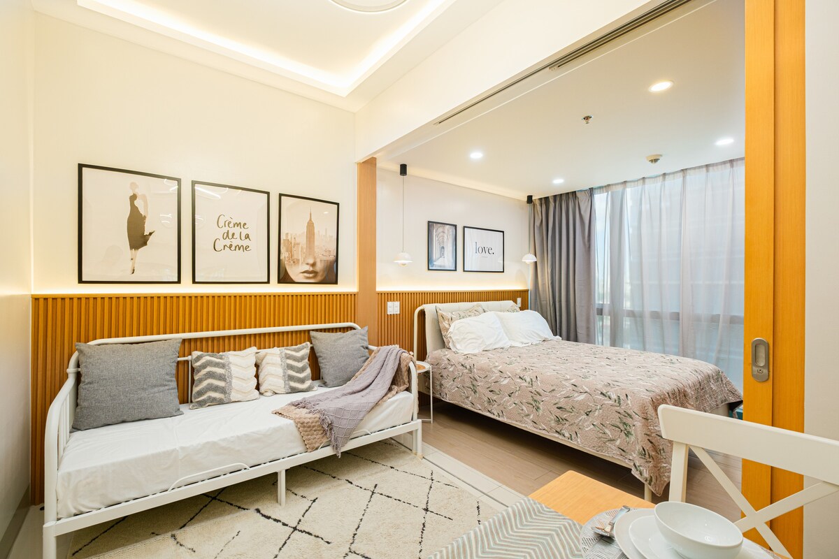 Մնացեք One Uptown Residences-ում՝ Ապթաուն ԲԳԿ-ում, որը կատարյալ է առավելագույնը 3 հյուրի համար։ Վայելեք Uptown Mall-ի պարող շատրվանի անմիջական տեսարանները Նյու Յորքի ոգեշնչմամբ կառուցված այս 36 քմ մակերեսով նորաձև բնակարանից, որը ունի երկտեղանի մահճակալ, 100 Մբիթ/վ արագությամբ Wi-Fi, կաբելային հեռուստատեսություն և Netflix։ Ներառում է առանց բանալու մուտք և ԱՆՎՃԱՐ կայանատեղի։ Լողավազանից օգտվելը հնարավոր է երեքշաբթիից ուրբաթ՝ համաձայն շենքի կանոնների։ Մի քանի քայլ հեռավորության վրա են Uptown Mall-ը և Grand Hyatt BGC-ն, որոնք ավելի ընդարձակ և շահավետ տարբերակ են մոտակա շքեղ հյուրանոցներից։