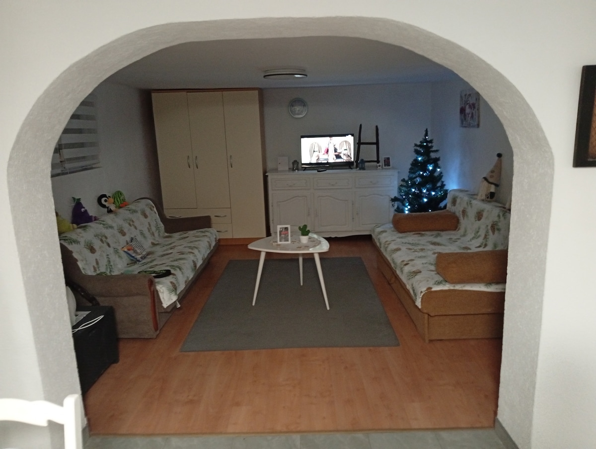 Փոքրիկ տուն, որը լիովին կբավարարի էլ ավելի պահանջկոտ այցելուներին: Տանը դուք կգտնեք այն ամենը, ինչ անհրաժեշտ է անհոգ հանգստի համար, և մի քանի րոպե քայլեք դեպի գետը և գեղեցիկ ջրվեժը (300 մ): Տունը գտնվում է շատ հանգիստ վայրում: Տունը վերևի պատշգամբից նայում է գետին և ջրվեժին ։ Կտուրն ընդհանուր է կողքի բնակարանի հետ, բայց այն բավական մեծ է մինչև 8 հոգու համար ՝ մեծ սեղանի շուրջ հաճելի մնալու համար ։ Քանի որ սա դուպլեքս է, հնարավոր է նաև վարձակալել հարակից բնակարան (5 հոգի )։