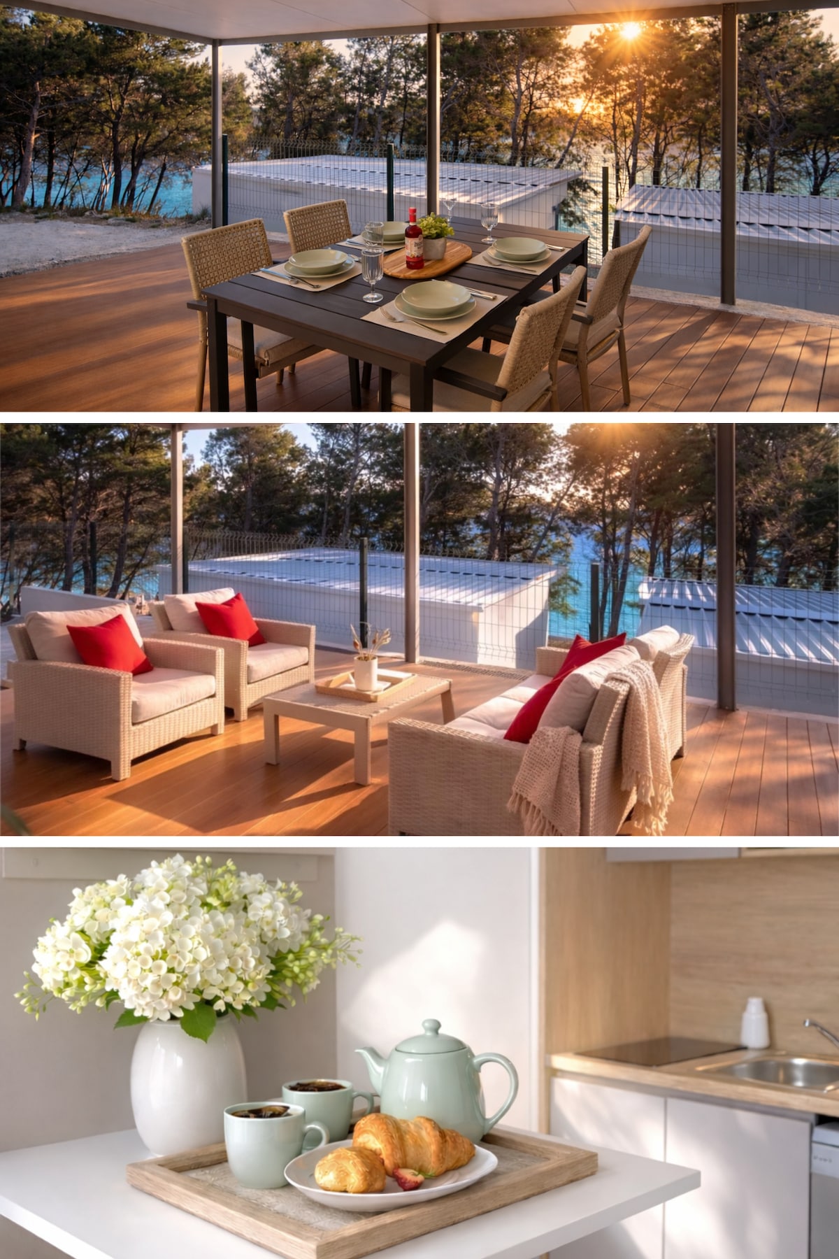 We have created the CALM BEACH HOUSE to provide you unforgettable and relaxed days of vacation. Just a few steps away from the beach you will enjoy your stay framed by large olive trees and an amazing view of the most beautiful coasts of Croatia. This design tiny house has been built with sustainable and eco-friendly materials. Minimalistic wooden design is matched with a unique interior design that has been created with lots of love. A synergy of wood, glass and lots of light.