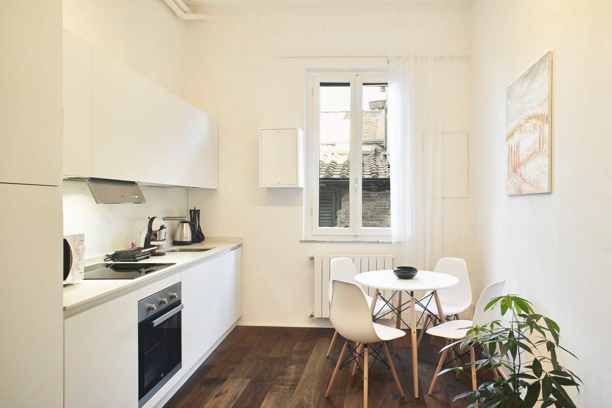 Սան Դոմենիկոյի բազիլիկի հարևանությամբ ՝ Դուոմոյից և Պիացցա դել Կամպոյից մի քանի քայլ հեռավորության վրա, այս գեղեցիկ և նրբագեղ պենտհաուսում կարող եք վայելել գեղեցիկ տեսարանն ու քաղաքի բոլոր հիմնական տեսարժան վայրերը մի քանի րոպեում հասնելու հարմարավետությունը:
