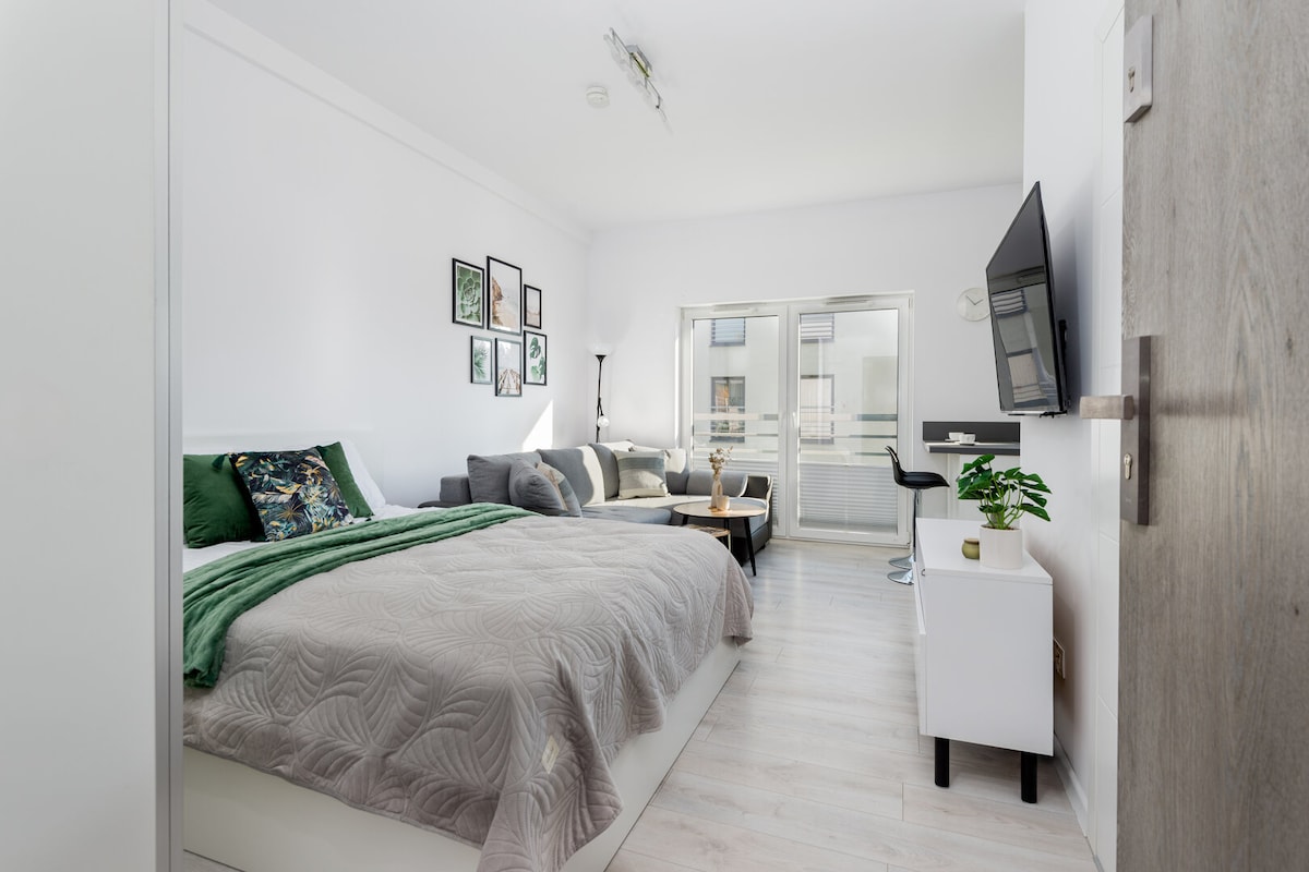Գտեք խաղաղ նավահանգիստ գեղեցիկ ճանապարհորդի բնակարանում: 1 ննջասենյակով բնակարան ՝ անվճար կայանատեղիով ։ Դրա տեղադրությունը կատարյալ է բոլոր նրանց համար, ովքեր այցելում են քաղաք. - որպես զբոսաշրջիկ ՝ հասարակական տրանսպորտը գրեթե ձեր շեմին է - որպես սպորտի կամ (և) համերգի սիրահար ՝ ընդամենը մի քայլ հեռավորության վրա կտեսնեք Tarczynski Arena - Wroclaw's Stadium - ը: Վազորդները գեղեցիկ լիճ և զբոսայգի ունեն անկյունի հետևում - բիզնեսի համար ՝ Վրոցլավի օղակի մոտակայքը թույլ է տալիս արագ կապ հաստատել բոլոր խոշոր ընկերությունների հետ