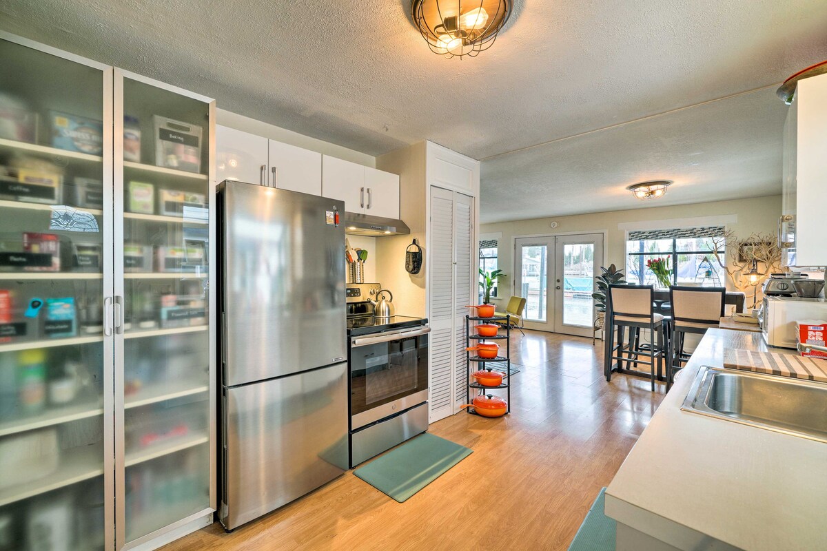 Escape to this stunning floating home on Sauvie Island — where the river is your backyard and herons are your neighbors. Wake up to still water and wild birds. Spend your days on the deck with morning coffee as boats drift past, grill dinner as the sun goes golden, then wrap in a blanket for the sunset or stay for the moonrise. A true island paradise with a serious kitchen, cozy interiors, and the city just 20 minutes away when you need it.