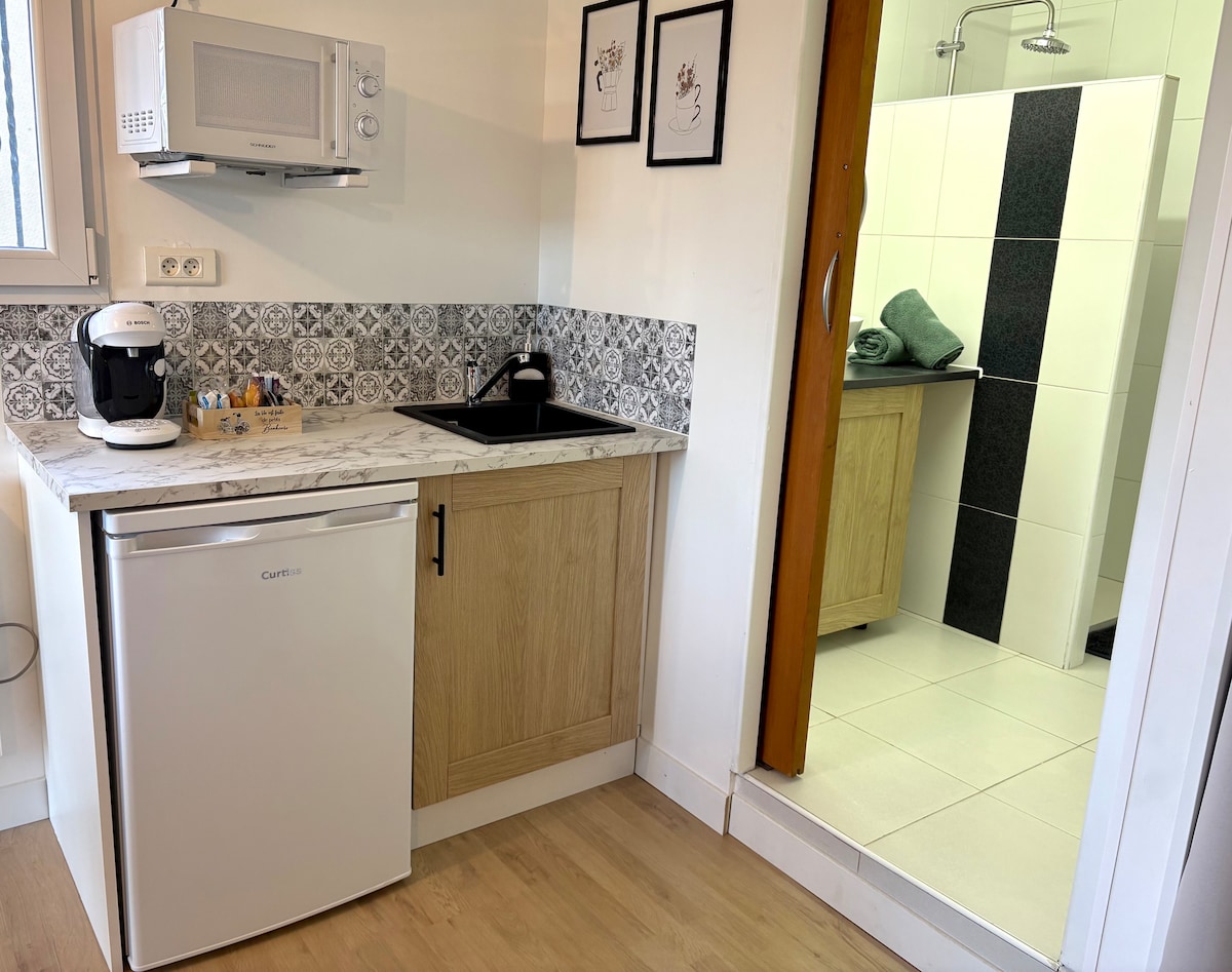 Duplex Cocoon գեղեցիկ զարդարված և հագեցած, անկախ մուտքով Մեցցանինի սենյակ ՝ երկտեղանոց մահճակալով (նոր անկողնային պարագաներ )/ պահարան / գրասեղան / զգեստապահարան / փոքր պահարան Հյուրասենյակ ՝ հեռուստացույցով/WIFI - ՈՎ Լիովին կահավորված խոհանոցիկ ՝ ինդուկցիոն ջեռոց, կափարիչ /էլեկտրական վառարան/ միկրոալիքային վառարան / սպասք / Nespresso + պատիճներ Լոգասենյակ մազերի /ցնցուղի գելով Ապահով մոտոցիկլետով ավտոտնակ Տեղավորում, որը գտնվում է գյուղի սրտում, խանութների մոտ (մթերային խանութ, մսագործների խանութ, ռեստորան) Մոտ է Մոնտաուբանին