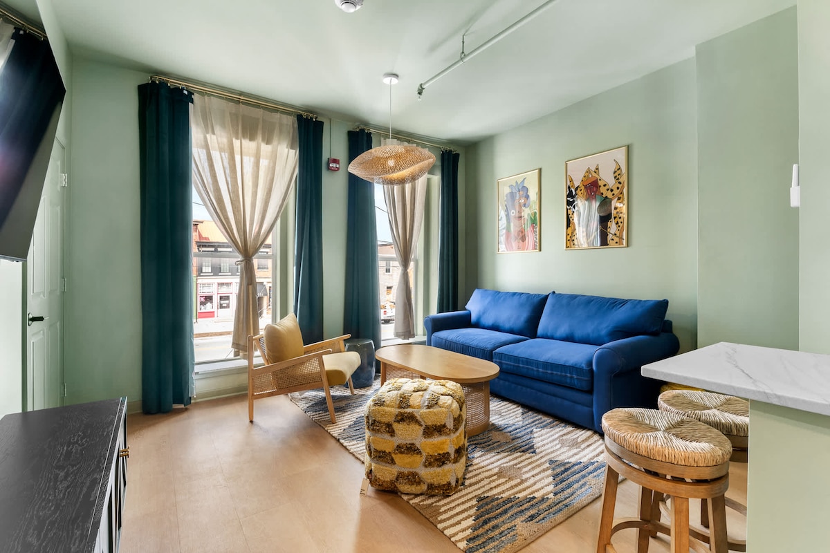 Կետն ընդարձակ և ամբողջովին վերանորոգված մեկ ննջասենյակով (թագավորական) բնակարան է: Ձեզ բացարձակապես դուր կգա հսկայական սեկցիոն բազմոցը ՝ դիտելով ձեր սիրած շոուները 65դյույմանոց սմարթ հեռուստացույցով: Կենտրոնին շատ մոտ գտնվող հարկաբաժին ՝ տեղական ռեստորանների, գարեջրի գործարանների, բուրբոնային շրջագայությունների և բարերի բազմաթիվ տարբերակներով: Շենքը գտնվում է Butchertown - ի սրտում ՝ նոր բուսաբանական այգիներից, Նուլուից, քայլող կամրջից և ֆուտբոլի մարզադաշտից անմիջապես ներքև:
