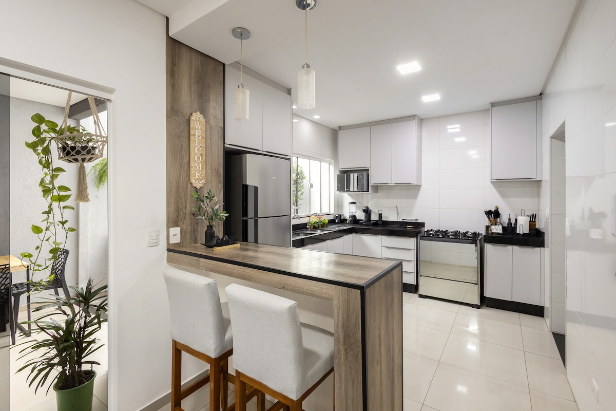 Մոռացեք ձեր հոգսերը այս հանգիստ, ընդարձակ վայրում: Այս տունը պարունակում է այն ամենը, ինչ անհրաժեշտ է հարմարավետ լինելու համար ։ Երկտեղանի մահճակալ, երկտեղանի մահճակալ, հեռուստացույց, օդորակիչ, խոհանոց ՝ գազօջախով, սառնարանով, միկրոալիքային վառարանով և բոլոր անհրաժեշտ պարագաներով ։ Դուք առաջվա պես մոտ կլինեք սուպերմարկետներին, բարերին, ռեստորաններին, դեղատանը և առողջապահական կենտրոնին: 🚘 2km da UCDB (Universidade Católica Don Bosco) 🚘 5 կմ UEMS