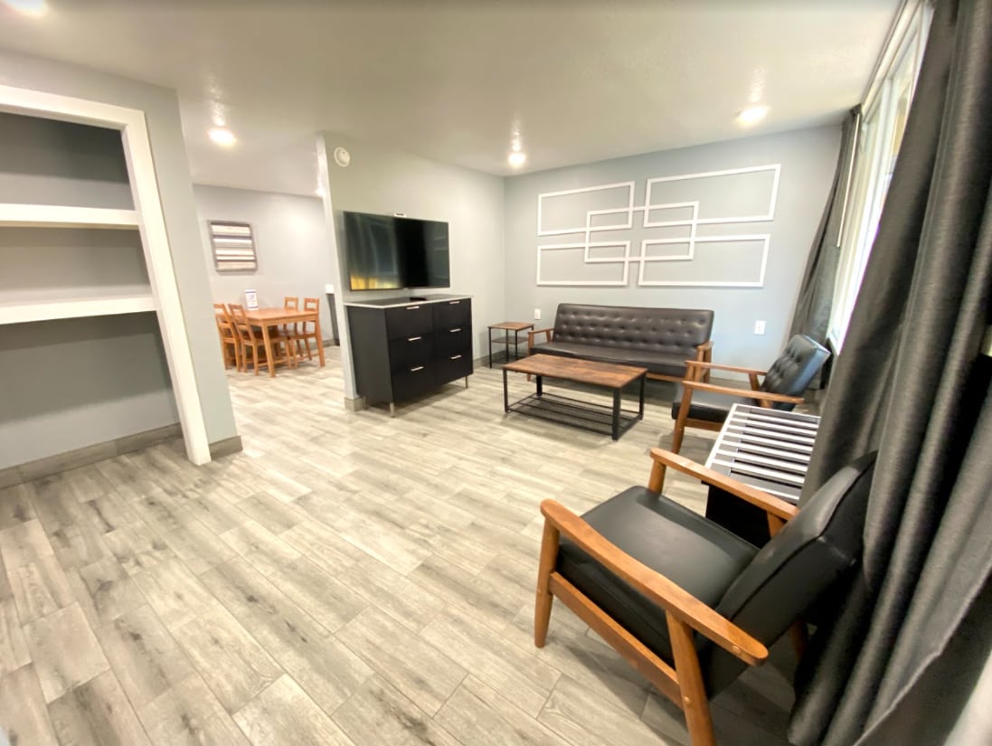 1-bedroom PRIVATE apartment suite with a full kitchen including all cookware/utensils, and 2 TVs in this suite in total. The room includes 1 king-sized bed. We also offer a great fitness center and guest laundry rooms so you can wash/dry clothing. You can pick up keys easily as our Front desk staff is on-site 24-hours per day and speaks English, Spanish, and Portuguese.