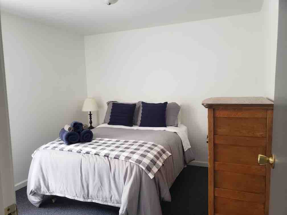 Our Airbnb is an entire two-bedroom apartment in an 1800s home in Albion, NY. You’ll have plenty of room to settle in and stretch out here. We can sleep five people in one queen, one double bed and a couch. The comfortable living room is stocked with board games and our full kitchen has all the appliances and kitchenware you need to make your own meals. With onsite parking, a private entrance, and washer and dryer, you can really make yourself at home.